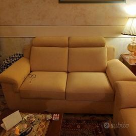 VENDESI a Genova n. due divani Poltronesofà modello BERCETO (104x172x103 cm), in tessuto GELSOMINO color giallo girasole, di cui uno fornito di due relax elettrici (perfettamente funzionanti), come da video e foto allegati, prenotati a gennaio 2022 (ricevuti ad aprile 2022), per cambio progetto. Acquistati al prezzo di Euro 2.700 circa, si cedono ad Euro 1.000, con trasporto a carico dell'acquirente (zona Carignano). Prezzo non trattabile. Divani nuovi, senza segni o macchie, senza odori, utilizzati per breve periodo. Le fotografie sono state effettuate in orari diversi, con luce naturale e luce artificiale. Per ulteriori informazioni, se seriamente interessati, contattare Gabriella al num. 3356364848.