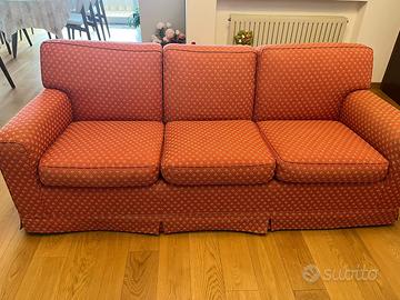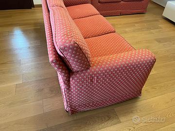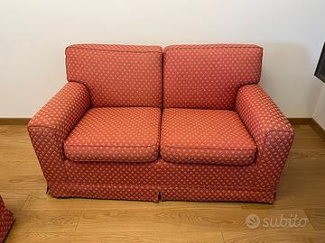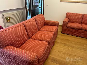 Vendo per cambio arredamento coppia divani artigianali in ottime condizioni, colore rosso con evemtuali copri divano elasticizzati di colore grigio chiaro.