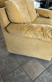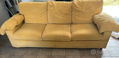 vendo due divani da 2 e 3 posti. cuscini in tessuto sono un po’ consumati e usati.