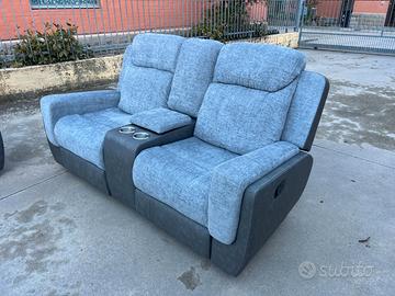 Rinnova il tuo soggiorno con questo set di divani reclinabili 2 pezzi, nuovo di zecca, in elegante tessuto grigio con dettagli scuri. Comodi e moderni, perfetti per rilassarsi o intrattenere!