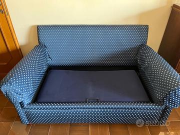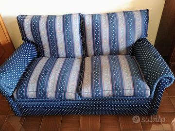 Divani di fattura artigianale con 4 cuscini (Larghezza m 1,40 altezza cm 77 profondità cm 90) + divano letto gemello con rete (larghezza m 1,20) come da foto e materasso. In vendita tutti e due € 250