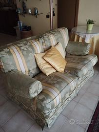 2 divani molto belli in tessuto da 3 e 2 posti, con 7 cuscini come in foto, ristrutturati e rifoderati dal tappezziere da poco, prezzo trattabile