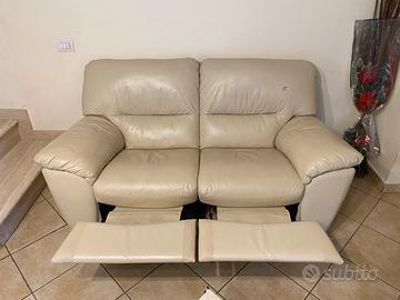Divano relax in vera pelle color bejge con poggia piedi. Davvero in ottime condizioni, belli e comodi. Disponibilità 2