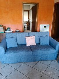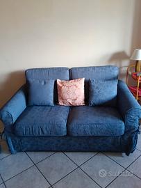 Vendo due divani da salotto in buone condizioni con rivestimento blu in cotone da mascato. Divano tre posti con letto una piazza e mezza, lunghezza 191 cm, profondo 91. (150€) Divano due posti con lunghezza 155 e profondo 91. (80€) Vendibili anche separatamente previo contatto. No perditempo.