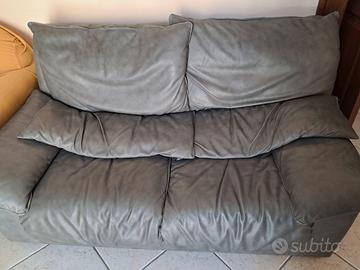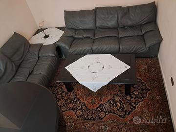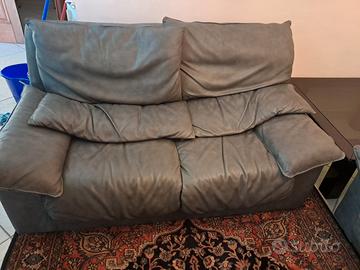 Vendesi 2 divani in vera pelle color grigio uno 2 posti fisso l'altro 3 posti divano letto, come nuovi N. 2 tavolinetti in legno e vetro misure 130×70 e 87×87 Messina centro. Vendonsi anche singolarmente.