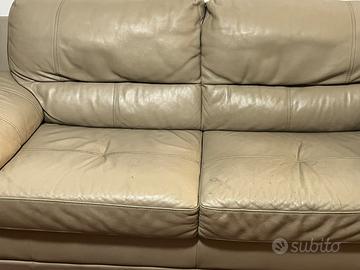 Vendo coppia divani vera pelle tre più due posti usati con segni di usura ma niente di particolare . Classico segno che si forma nella pelle vera . Contattate se volete altre info . Disponibili da subito