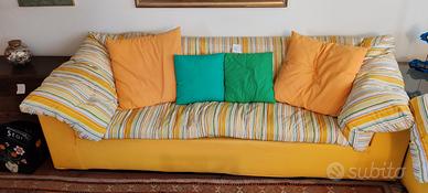 Coppia divani da 3 e 2 posti misure cm 230x90 e 170x90. Schienale e braccioli sono separabili dalla seduta. È disponibile anche un secondo rivestimento tinta ecru'. Si vendono anche singolarmente. I divani devono essere ritirati e portati via dall'acquirente con propri mezzi.
