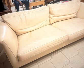 Vendo due divani in vera pelle color magnolia ,uno da tre posti e uno da due posti molto comodi e struttura in legno massello.Comprati a Tolentino anni fáe vendo per trasferimento in altra cittá .Non ci sono strappi,pelle integra solo qualche segno di usura della pelle sui braccioli((lato sinistro tre posti ,lato destro il due posti).Ritiro in loco.