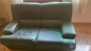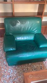 Salotto completo in vera pelle, struttura solida, da restaurare o ricolorare. Ottima base per progetto restyling.