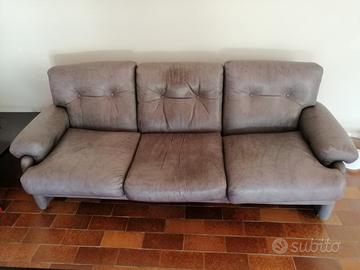 Vendo due divani 3 posti in pelle colore grigio misura circa 2 metri. Uno dei due presenta parziale usura nel posto centrale. Prezzo euro 400 uno 700 di due.