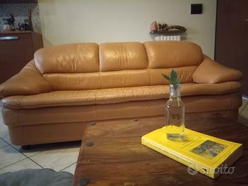 vendo, a blocco unico, per cambio arredamento, divani 2/3 posti e poltrona vintage anni '70 tenuti bene, sempre ingrassati per mantenere morbida la pelle prezzo trattabile
