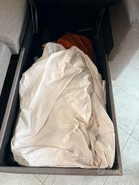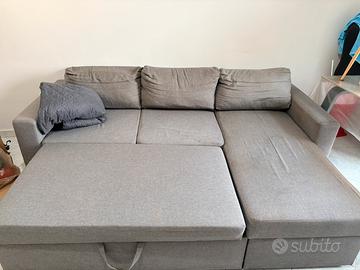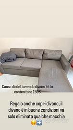 Vendo divano letto contenitore Divano letto contenitore lungo 2,35 m la parte della chaise loungue e è lunga 1,70 m il divano è in buone condizioni stabile e poco usato solo che presenta delle macchie che vanno eliminate disponibile anche in omaggio, copri divano trasporto a carico dell’acquirente