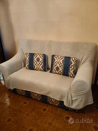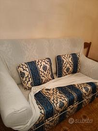 Divano come foto con fantasia blu e beage. Comprato qualche anno fa, ma tenuto benissimo. Sempre coperto, come foto. ha solo una macchia leggermente rosa che si vede già in foto.
