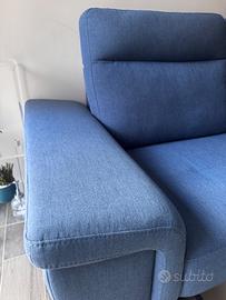 Divano chateau d’ax con contenitore e poggiapiedi estraibile, compatto e comodissimo, colore blue jeans. Misure 202 cm x 86 cm Ritiro zona vomero o spedizione da coordinare a carico dell’acquirente