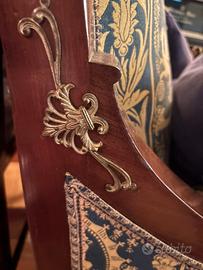 Divano, dormeuse, 2 pezzi in mogano con fregi dorati, vintage