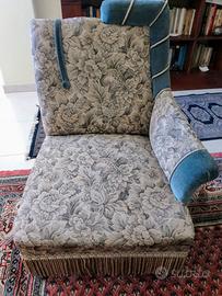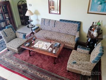 Salotto stile Liberty siciliano dei primi del '900, tipico delle case nobiliari dell'isola. Composto da divano tre posti, misure: L. 170 cm, P. 50 cm, H 80 cm. Poltrona a un bracciolo, misure L 55 cm, P 48 cm, H 80 cm. Poltrona a due braccioli, misure L 60 cm, P 50 cm, H 80 cm. Condizioni: buone, ma rinnovando la tappezzeria gli si può dare anche una veste più moderna. Richiesta: 500 euro. Spedizione o semplice ritiro a carico dell'acquirente.