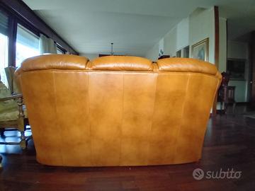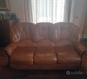 Divano 3 posti + 2 poltrone pelle color cammello vendibili anche separatamente