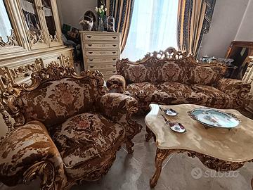 Divano, 2 poltrone e tavolino in stile Barocco Veneziano