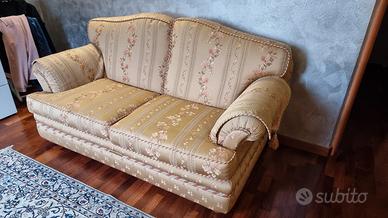 vendo divano 2 posti in tessuto damascato, cuscini inferiori e superiori sfoderabili, misure 180cm x 95cm, usato solamente come complemento d'arredo e raramente per sedersi, pari al nuovo