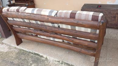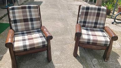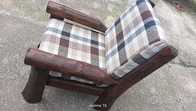 Divano 2 posti + 2 poltrone in legno (castagno)