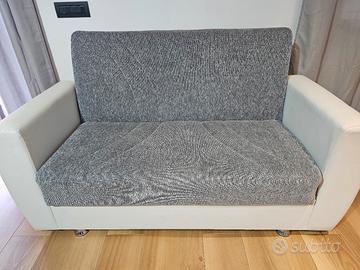 Vendo divano trasformabile 2 posti, meccanismo click clac con vano contenitore salvaspazio. Rivestimento eco bianco e tessuto grigio. 158×84×91cm ( larghezza, profondità, altezza ). Praticamente nuovo. nessun segno di usura.