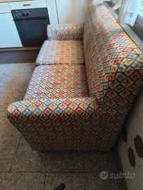 Divano 2 posti dalle dimensioni contenute. Il poggia schiena non molto alto consente di posizionarlo anche sotto una finestra.