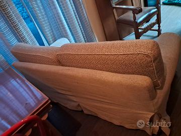 Divano 2 posti in tessuto sfoderabile con cerniere,colore sabbia con puntini,sperosi possa vedere bene nelle foto