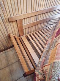 divanetto in legno a 2 posti, con prolunghe reclinabili e tessuto sfoderabile