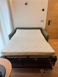 Divano da 2 posti che diventa divano letto, ottime condizioni, colore verde chiaro.