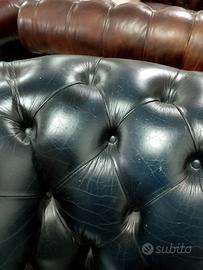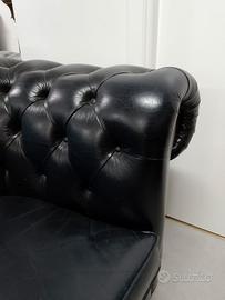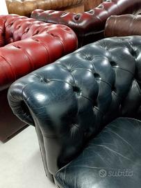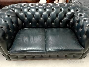 Divano chester chesterfield 2 posti modello club vintage inglese originale in pelle blu scuro degli anni '90.