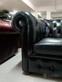 Divano British realizzato artigianalmente in Inghilterra in pelle bovina di pieno fiore tamponata e stonalizzata a mano.