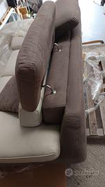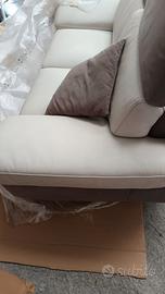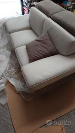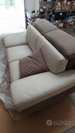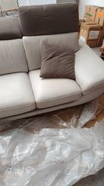 Vendesi divano (Divani e living) in vera pelle color panna e alcantara color tortora, due posti comodi , poggiatesta regolabili, vendesi per cambio casa, condizioni ottimali, igienizzato. Solo ritiro zona centro commerciale tiburtino Roma