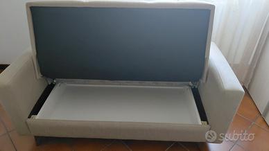 Divano 2 posti adatto a spazi piccoli ,molto comodo e ben tenuto.apribile con cassettone. Dimensioni chiuso 150x80 aperto con braccioli Lungo188x140