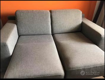 Divano 2 posti con doppia chaise longue estreibile . Piedi estraibili in acciaio. Divano che unisce design, funzionalita ‘ , qualita ‘ , perfetto in ambuenti piccoli . Chaise longue estraibile al occorenza . Interamente sfoderabile . Lunghezza 1,70 / largezza chiuso 105cm , aperto cm140 .bracciolo ampiezza ca 23 cm . Seduta singola 60cm , vendo x trasloco . Valore ca 2 mila euro