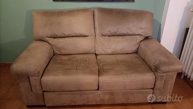 Vendesi divano 2 posti con chaise longue a scomparsa marca Poltronesofà colore tortora ottimo stato. Misure 170cmx95cm. Chaise longue 60cm. No perditempo