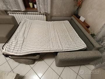Apertura divano letto molto comoda. Come si vede in foto non c'è bisogno di rimuovere i cuscini.