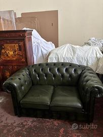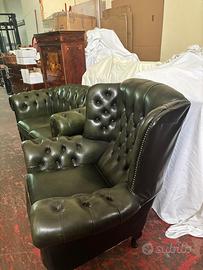Divano 2 posti con poltrona a schienale alto originale ingleso Chesterfield in vera pelle verde bottiglia. No spedizione ritiro in zona