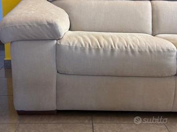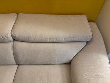 Vendo bellissimo divano lineare di Divani&Divani by Natuzzi per rinnovo arredamento. Il divano è caratterizzato da un design moderno e da una seduta estremamente profonda e confortevole. È un 2 posti, ma per le sue misure potrebbe essere tranquillamente un 3 posti. Sempre tenuto con copri divano. Dettagli principali: •Colore: sabbia melange (tessuto neutro, si adatta a ogni ambiente). • Caratteristiche: Poggiatesta reclinabili/regolabili per il massimo comfort cervicale e braccioli ampi. • Condizioni: Molto buone, tessuto ben tenuto e struttura solida. MISURE: H79/98 L 188 P 106 500€ (poco trattabile).