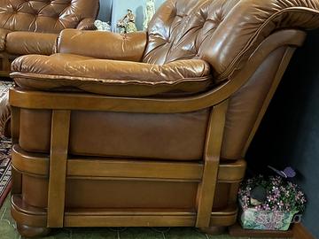 Vendo divano 2 posti + divano 3 posti, in buone condizioni con struttura in legno e sedute in pelle.