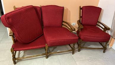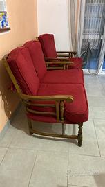 Divano 2 posti e poltrona in legno rimesso a nuovo