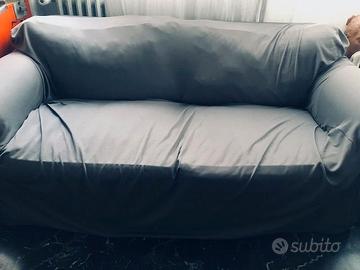 Divano Ikea modello Ektorp a 2 posti, con fodere bianche usate, ma con copertura elastica in tessuto grigio, ottime condizioni il divano, condizionin discrete le fodere bianche dei cuscini e del divano.