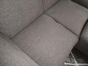 Divano 2 posti color grigio, buone condizioni, dotato di pouf.