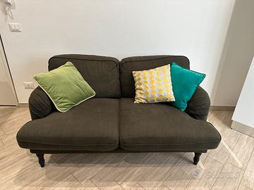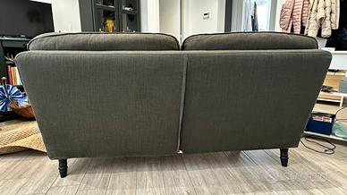 Vendo divano IKEA Stocksund 2 posti, colore grigio. Usato. larghezza: 154 cm profondità: 95-97 cm altezza: 89 cm. Presenta una seduta comoda e spaziosa (58 cm di profondità circa) e uno spazio sottostante di circa 11-13 cm, ideale per la pulizia. È caratterizzato da braccioli arrotondati e gambe in legno. Cuscini NON inclusi. Trasporti e ritiro a Rimini a carico dell’acquirente.