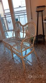 divanetto a due posti in bambù di colore bianco sbiadito in ottime condizioni. Completo di seduta e schienale e tre cuscini.