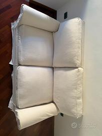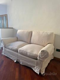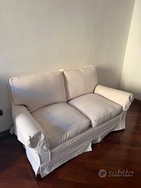 Si offre un divano (non letto) di 2 posti, comodo e ben tenuto, con ottima copertura bianca. Si può fare consegna a Milano con furgone (costi da concordare).