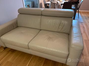 Divano di Poltrone e Sofà in ecopelle colore beige chiaro Lunghezza 1,60 Con piedini in metallo e schienale con poggiatesta regolabile