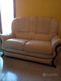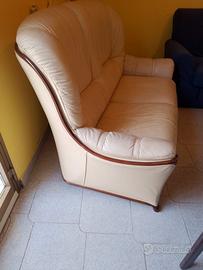 Divano due posti in legno e pelle sintetica, Lunghezza 145, Larghezza 100, Altezza 104, la pelle presenta delle crepatite superficiali
