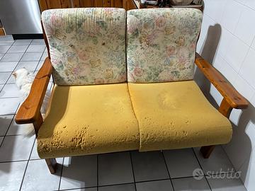 Vendo divano 2 posti in legno, circa 10anni di vita, struttura in legno molto ben tenuta. Ha solo 2 cuscini da rifoderare causa “gatto” che ha rovinate tutte le fodere. Le fodere dello schienale invece come da foto sono a posto e hanno la zip per lavarle quando necessario. Misure del divano : Larghezza 135cm Profondità 85cm Altezza 95cm Seduta con cuscino 55cm Il divano era stato acquistato a 600 euro che è il costo medio di questi divani con inserto in legno. Vendo a cifra modica per liberare il garage perchè ho comprato un divano nuovo. Ottimo affare per chi sistema le fodere dei due cuscini in autonomia. Ritiro presso il mio domicilio in zona cittadella a carico dell’acquirente (il divano ha delle viti e sembra smontabile per chi è capace cosi da ritirarlo in auto in pezzi separati, non spedisco). Non fate offerte il prezzo è gia stracciato, no perditempo.