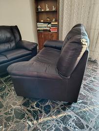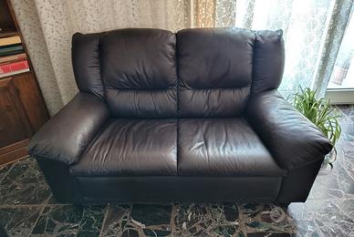 Divano in pelle fiore morbidissima 2 posti colore testa di moro. Misure: lunghezza 150 cm, profondità 86 cm, h seduta 43 cm, h schienale 90 cm.
