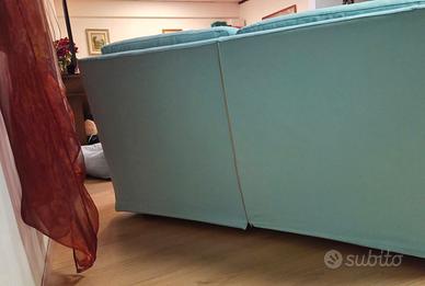 Vendo divano 2 posti in tessuto celeste, come nuovo, lavato e stirato con imbottitura Crosti9 Dimensioni L 160 cm h 80 cm l 85 possibilità di trasporto